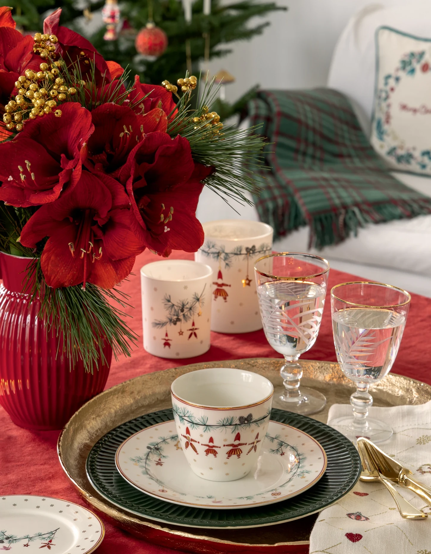 Die bezaubernde Tischdecke Aix mit weihnachtlichen Girlanden verziert fällt trotz ihrer Schlichtheit sofort auf ! Die Mitte des Tisches kannst du noch zusätzlich zu den niedlichen Ranken mit Kerzenhaltern und Figuren oder Bäumchen dekorieren! Auf den weißen Flächen lässt du dein schönes Geschirr wirken und verzauberst mit der wunderschön gedeckten Tafel deine Familie oder deine Gäste!