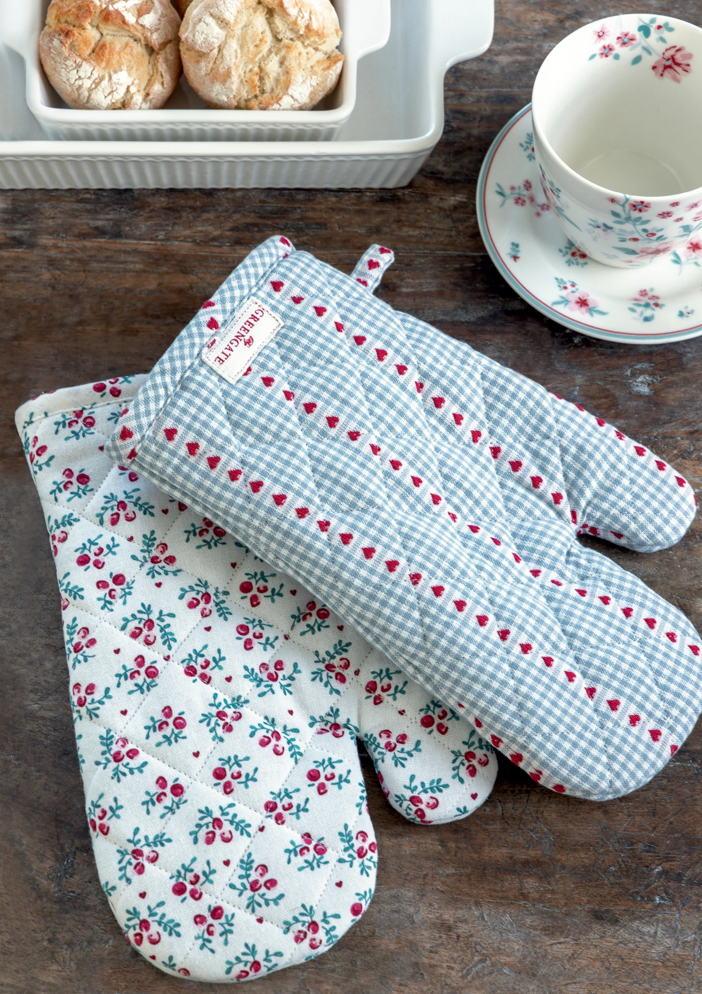 Its hot baby!...und da sind diese hübschen Handschuhe schnell zur Hilfe und helfen dir ohne Blessuren sicher deine Speisen auf den Tisch zu befördern. Die Handschuhe sind‚ aus dicker hochwertiger Baumwolle mehrschichtig gearbeitet und sind ein unverzichtbarer Helfer für jeden Haushalt! Frei in der Küche aufgehängt machen sich die schönen Küchenhelden‚ aufgrund des originellen‚ Musters direkt perfekt als Dekoration‚ und sind schnell zur Stelle, wenn es mal wieder heiß her geht.