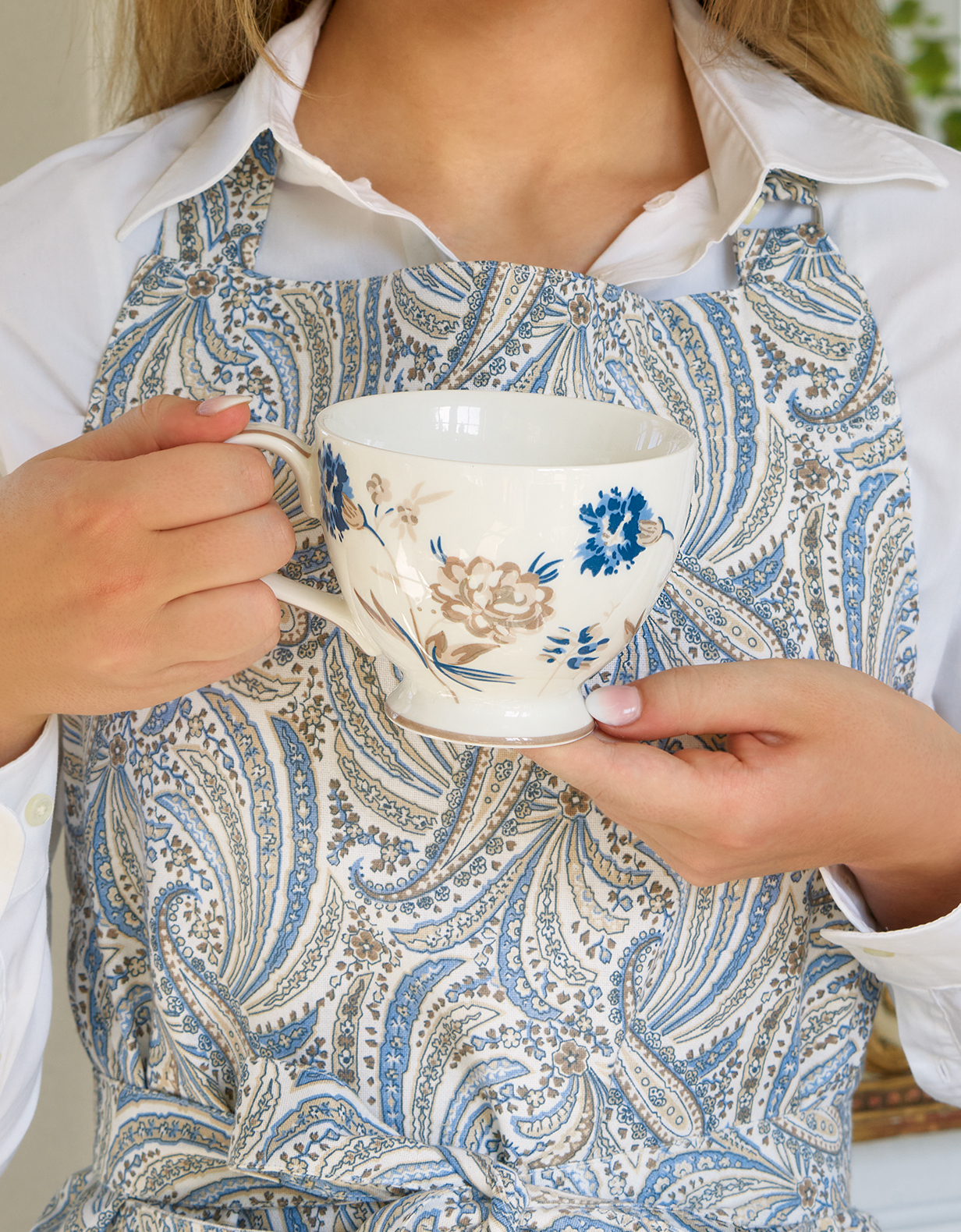 Die zauberhafte romantische Schürze Columbine white ist wirklich ein Schmuckstück von einer Küchenhilfe! Eigentlich viel zu schade, um sie "nur" beim Kochen zu tragen...mache es doch wie eine liebe Kundin von mir, die mir erzählt hatte, dass sie die Greengate Schürzen überm Tag eigentlich gar nicht mehr auszieht! Sie sehen rasend gut aus, schützen vor Verschmutzungen aller Art, helfen auch beim Gärtnern und sehen gerade dabei einfach so süss aus, beherbergen in den Taschen allerlei Utensilien und verbreiten einfach einen so charmanten Eindruck, dass du sie bestimmt‚ auch ganz schnell für absolut unentbehrlich halten wirst! Du merkst schon, hier herrscht eine grosse Greengate Schürzenliebe!!! Die Schürze gibt es in Einheitsgrösse und sie kann sowohl in der Breite als auch in der Länge stufenlos verstellt werden.‚ ‚