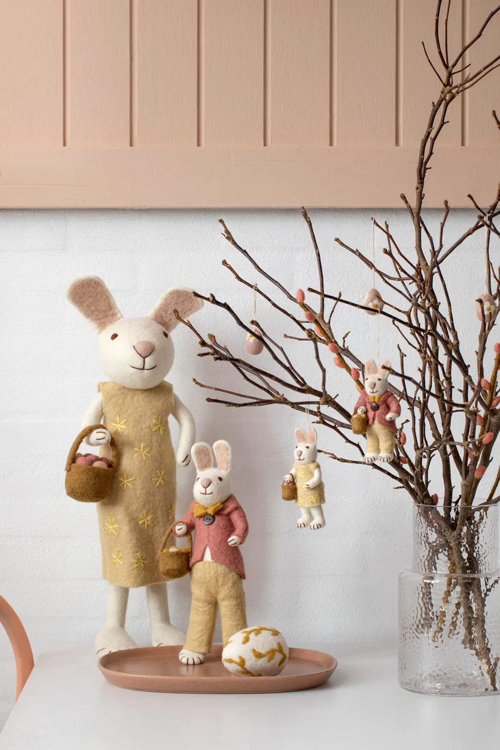 Diese bezaubernden handgefilzten Dekoostereier zum Anhängen und alle anderen handgefilzten Produkte zeichnen sich durch das ins kleinste Detail liebevollste Design und perfekte Ausfertigung. Jedes Produkt ist ein zauberhaftes Unikat mit kleinen Abweichungen, die jedes Exemplar einzigartig machen. Die Figuren kannst du entweder anhängen oder stehend dekorieren, da die großen Exemplare innen drin drahtgestärkt sind und sich flexibel ausrichten lassen.Die süßen handgefilzten Produkte verbreiten viel Freude und eignen sich perfekt als beliebtes Geschenk, Mitbringsel, Osterstraußanhänger, Geschenkanhänger oder eine größere Dekoration.