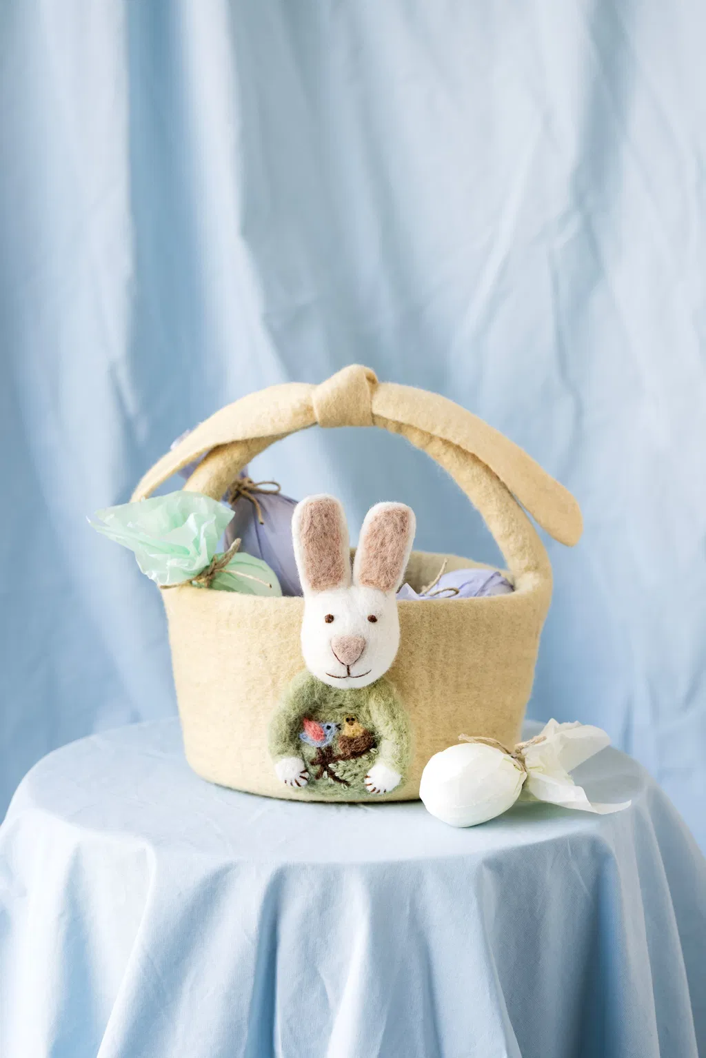 Gry & Sif handgefilztes Osterkörbchen gelb mit Hasi