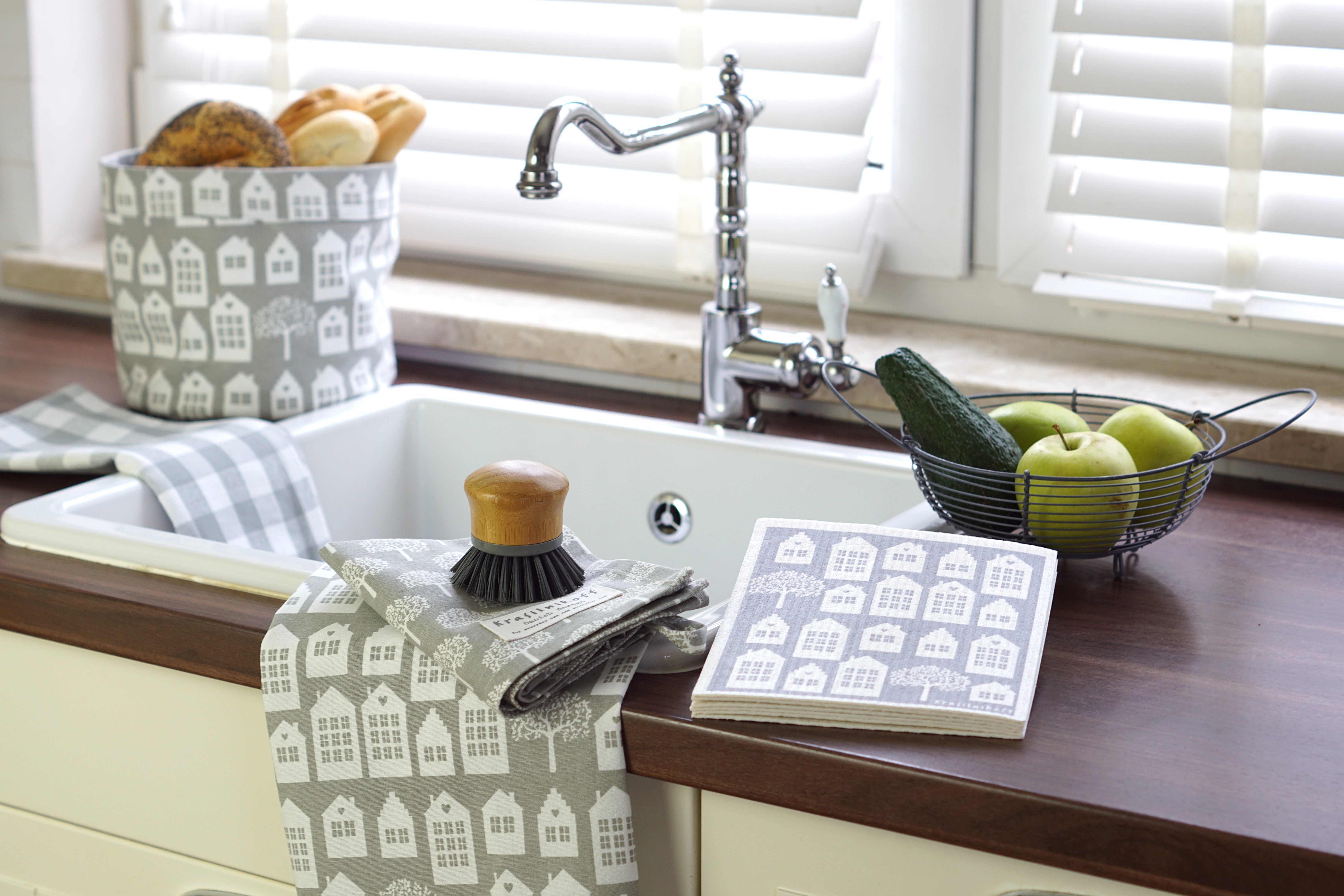 Die Krasilnikoff Geschirrtücher trocknen wunderbar und garantiert fusselfrei ab, soweit zum praktischen Nutzen, sie sind durch die wunderschönen Krasilnikoff Muster jedoch viel zu schade zum verstecken. In der Küche sichtbar aufgehängt oder als kleine Mitteldecken auf dem Esstisch ergänzt durch eine schnell zusammengestellte Deko aus einer Vase und Windlicht zauberst du im Handumdrehen einen Hingucker für deinen Küchen und Essbereich...