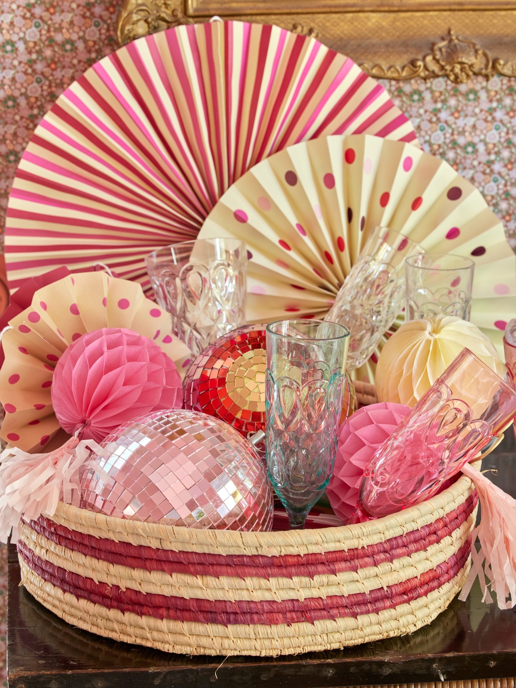 Nichts "ruft" eindeutiger Paaaarty als eine Discokugel! Mit diesem funkelnden Liebling über deinem Kopf wird alles automatisch viel festlicher und fröhlicher...dieses schöne Schätzchen ist rosafarben, funkelnd,‚ glitzernd und misst im Durchmesser 25 cm.‚ Die Discokugeln verkaufen wir bei uns im Lädchen nicht nur an große Partymäuse, sondern auch an die kleinen, die sich über die glitzernden Lieblinge als Teil ihrer Kindergeburtstagsdeko freuen und die Kugeln oft für immer als Zimmerdeko behalten.‚ Die Discokugeln sind mit funkelnden kleinen quadratischen Steinchen dekoriert und passend beklebt, so daß an einigen Stellen kleine Fugen entstehen können. Dies ist ein Teil der Dekoration gegeben durch die runde Form des Artikels, keineswegs ein Grund zu einer Beschwerde.‚ Wir weisen darauf hin, daß die Discokugeln kein Spielzeug, sondern eine Dekoration sind! ‚